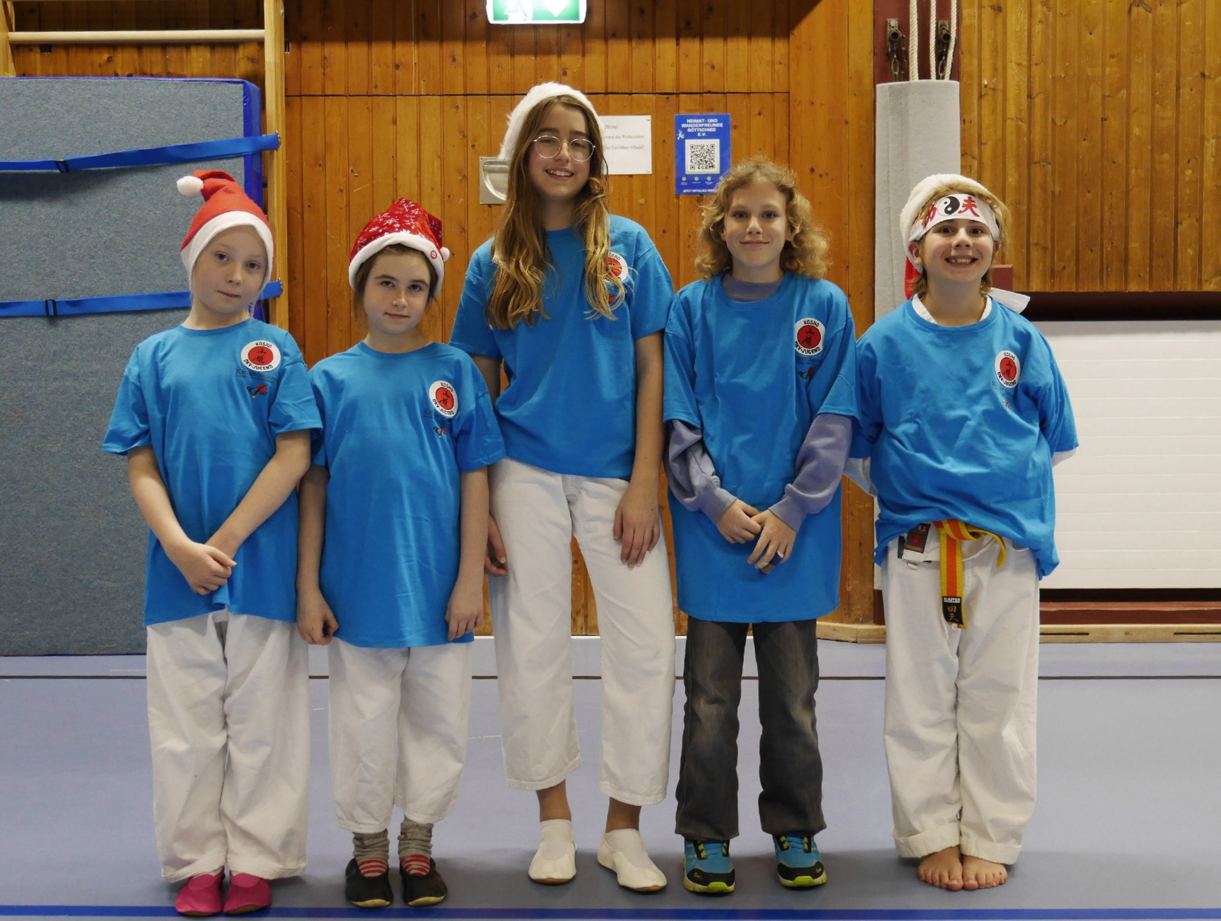 Dass bei der Karate Abteilung des SV 05 Göttschied gescheit trainiert wird, sollte hinlänglich bekannt sein. Diese Karate -Trainingsgruppe, im Fachjargon Dojo genannt, ist im Rheinland-Pfälzischen – sowie im Deutschen Karate Verband bekannt. Es ist der größte und älteste Karate Verein an der Nahe und hatte Wettkampferfolge bis zur Deutschen Spitze. Im 39-sten Jahr des Bestehens hatte die Abteilung einige Höhepunkte, die sich im vierten Quartal konzentrierten. Abteilungsleiter Leo Stibitz, Carsten Schmidt und Jens Goedecke wurden zum nächsten Meister-Grad graduiert. Mitte Dezember konnten 23 Karate Ka, kleine und große, die Prüfung zum nächst höheren Gürtel bestehen. Zur letzten Trainingseinheit trafen sich dann noch mal alle Alters- und Leistungsklassen zum gemeinsamen Training. Große unterstützten Kleine und umgekehrt. Jede und jeder konnte seine Stärken einbringen, um die Trainingsinhalte, konditionell und kognitiv einzubringen. So ergab dieser Mix jede Menge Schweiß und Spaß, der nach dem Training mit Pizza und Kaltgetränken belohnt wurde. Zu diesem Anlass wurden auch die erfolgreichen kleinen Karate-Ka geehrt, die erfolgreich das Sportabzeichen für Kinder und Jugendliche im Deutschen Karate Verband, genannt „Keiner Samurai“, abgelegt haben. Auch hier sind Prüfungen zu Kondition, Koordination, Ausdauer und Kraft abzulegen, wie auch beim Deutschen Sportabzeichen. Zur ersten Leistungsstufe „Kosho“ konnten Leonie Stibitz, Maya Rockenbach, Victoria Holz, Luzie Henn und Thiago Venegas Reinganz ihre Urkunden und ein exklusives T-Shirt in Empfang nehmen.