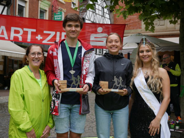Bild: die Sieger der Kurzstrecke mit der Deutschen Edelsteinkönigin, Vivian Heidrich